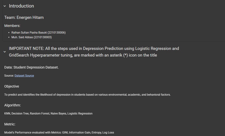 Pembangunan Model Prediksi Depresi Pelajar Berdasarkan Faktor Lingkungan dan Akademis